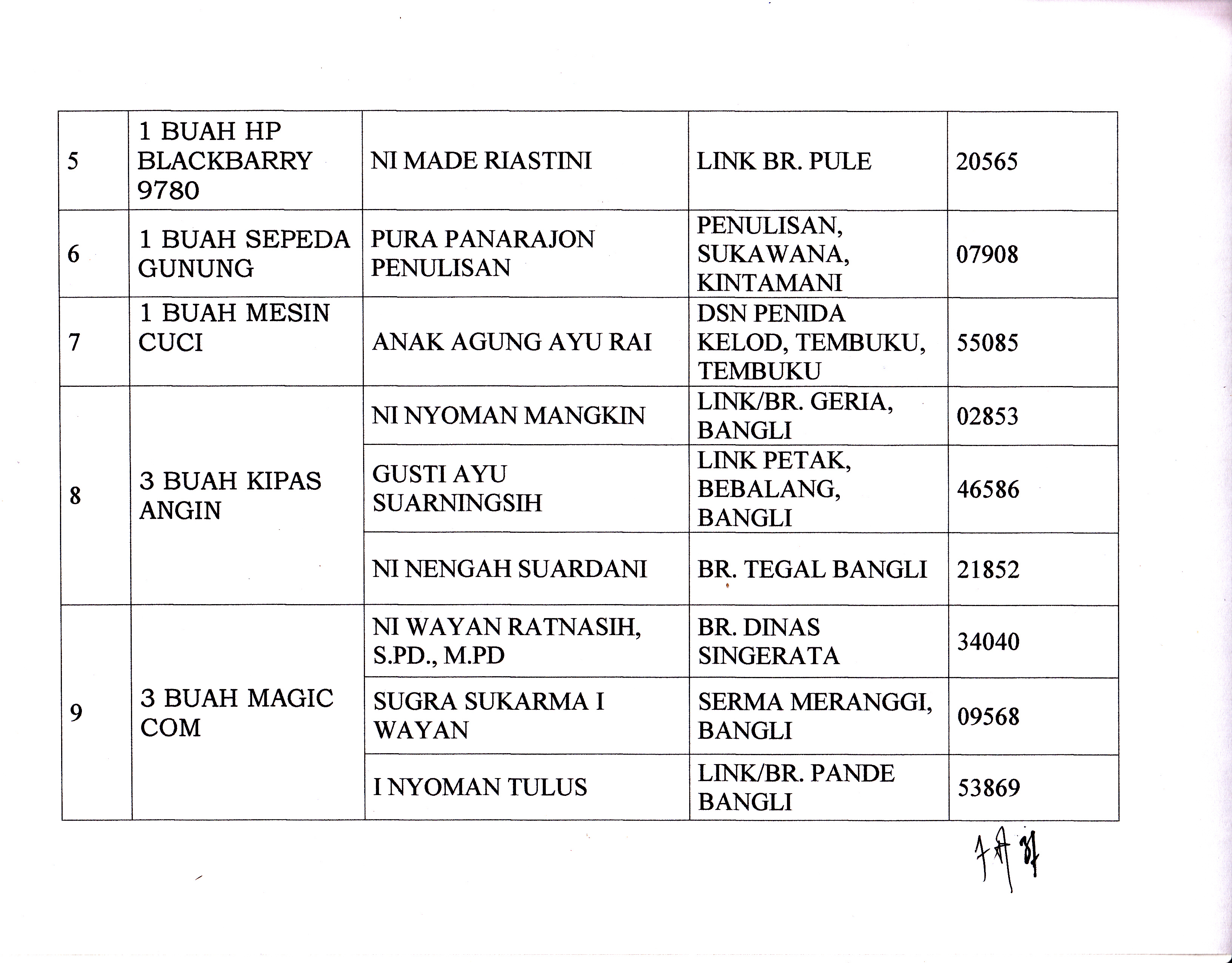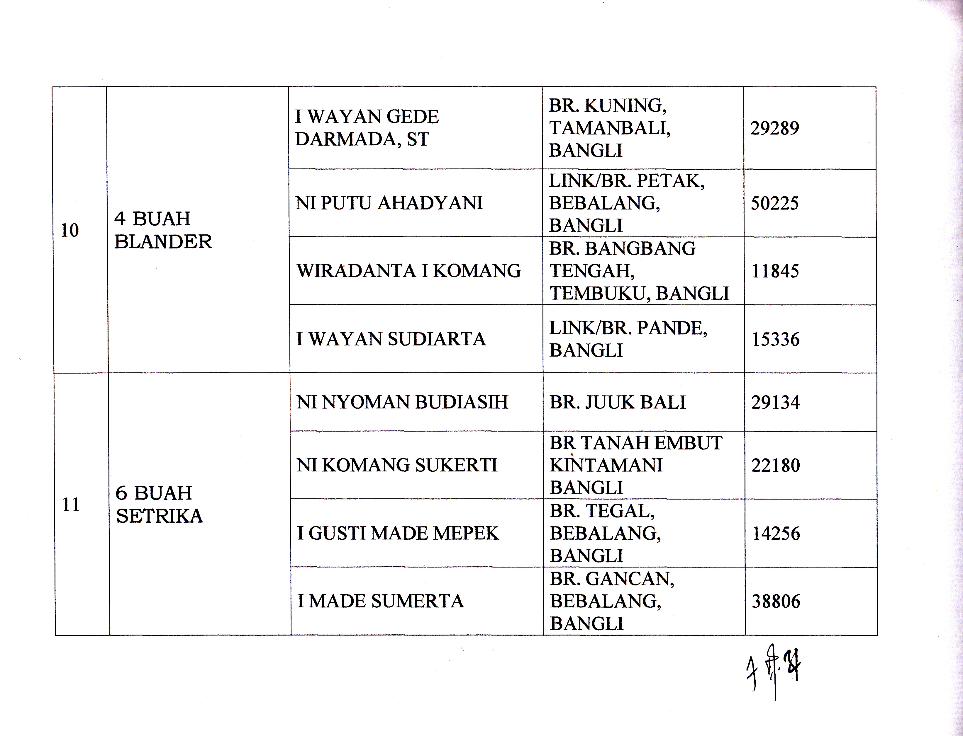 DAFTAR NASABAG YANG MEMPEROLEH DOOR PRIZE TALI ASIH TAHUN 2014